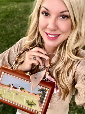 Please note: this bag is hand-finished in our design studio, and each one may have slight variations from what is pictured here. Varied artistic details add a unique charm to the bag and are subject to the designer's discretion at the time your bag is made.