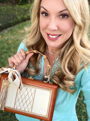 Please note: this bag is hand-finished in our design studio, and each one may have slight variations from what is pictured here. Varied artistic details add a unique charm to the bag and are subject to the designer's discretion at the time your bag is made.